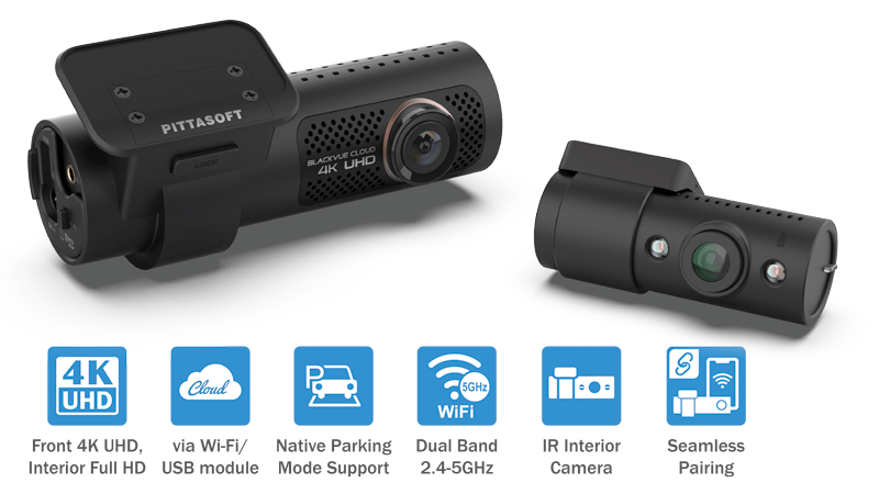 4K Ultra HD (front) and Full HD (interior) cameras.